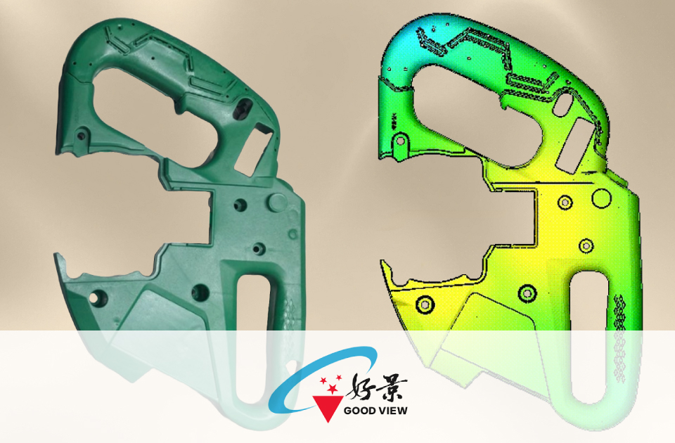 好景团队利用 Moldex3D 对电动工具复合式斜切机手柄进行优化,验证了软件分析的准确性。通过分析比对原始设计与减胶后流道设计的结果,确认优化方案可行性,达到减少 25% 原料成本、67% 人工成本、降低锁模力及生产周期的目标。修模并试模后,实物与模拟结果高度相似,产品变形符合客户需求,并成功减少试模次数、提升成型效率的预期效益。此案例不仅验证了 Moldex3D 在成本优化与设计验证的应用价值,也为同类产品累积宝贵经验,为公司未来产品开发与生产优化奠定基础。