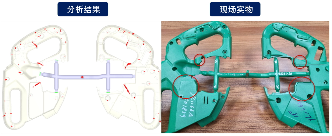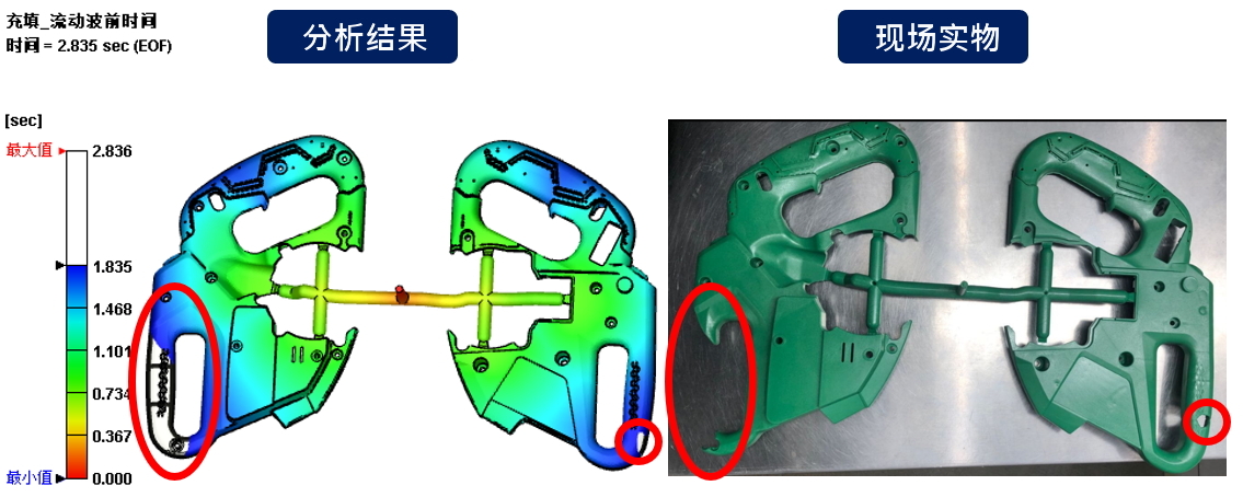 此外,在流动波前短射结果比对上,也能看出试模结果与分析结果高度相似(图十一)。