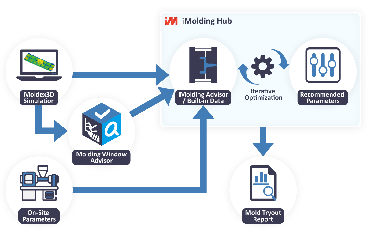 试模不再需要依赖经验反复尝试,全新的 iMolding Advisor 用数据直达最佳决策。使用者可先由 Molding Window Advisor 快速取得建议成型参数,再一键串连到 iMolding Advisor 执行试模导引,取得最贴近机台性能的设定,也能直接使用内建超过9,000只材料与过万机台数据进行仿真,提前预侦测缺陷并提供修正方向,让试模更可控、更高效。