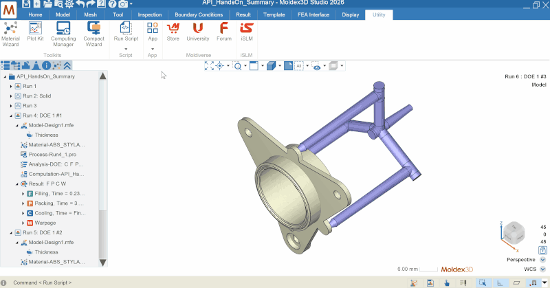 Moldex3D 也提供五组完整自动化范例,涵盖项目建立、分析设定到报告产出,让快速导入批次运算与自动化流程成为弹指可用,全面提升跨团队、跨项目的模拟效率。