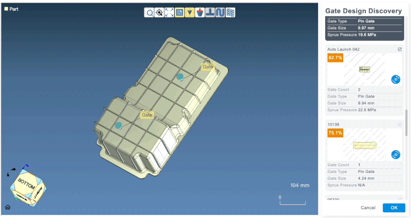 面对设计时浇口位置的难题,改良后的 Gate Location Advisor 能与自动分型方向判断协同运作,自动建议浇口位置与分模方向,大幅降低人工试错次数,提升初期设计决策的速度与准确度。